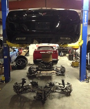 Somethings are almost impossible to do without a lift. That's why we have a 9,000 lbs. capacity 2 post lift. This is a shop must have, and helps us to do a lot of the installs you wouldn't want to try in your garage with jack stands.